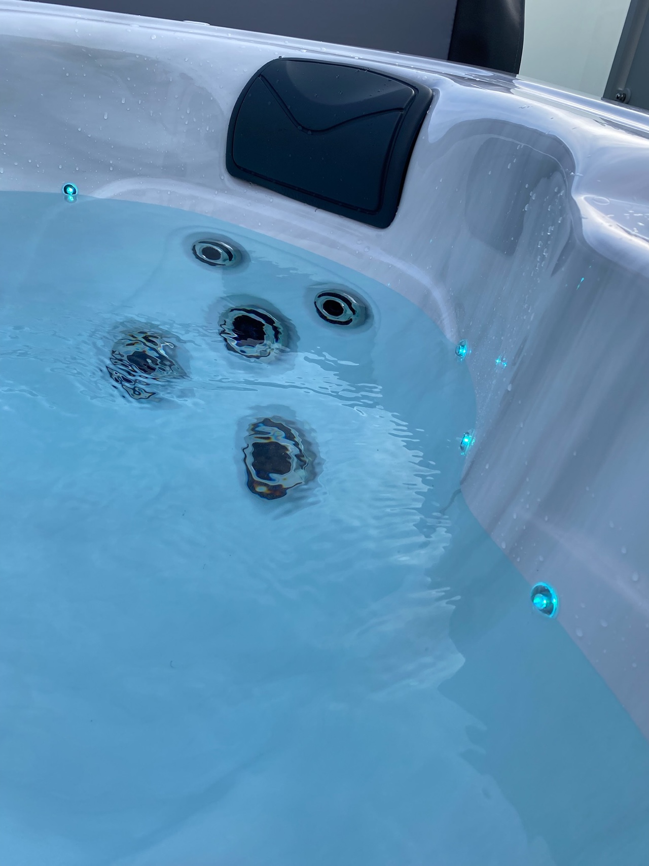 30 getti d’acqua regolabili massaggiano la schiena , i muscoli delle gambe  e le piante dei piedi.